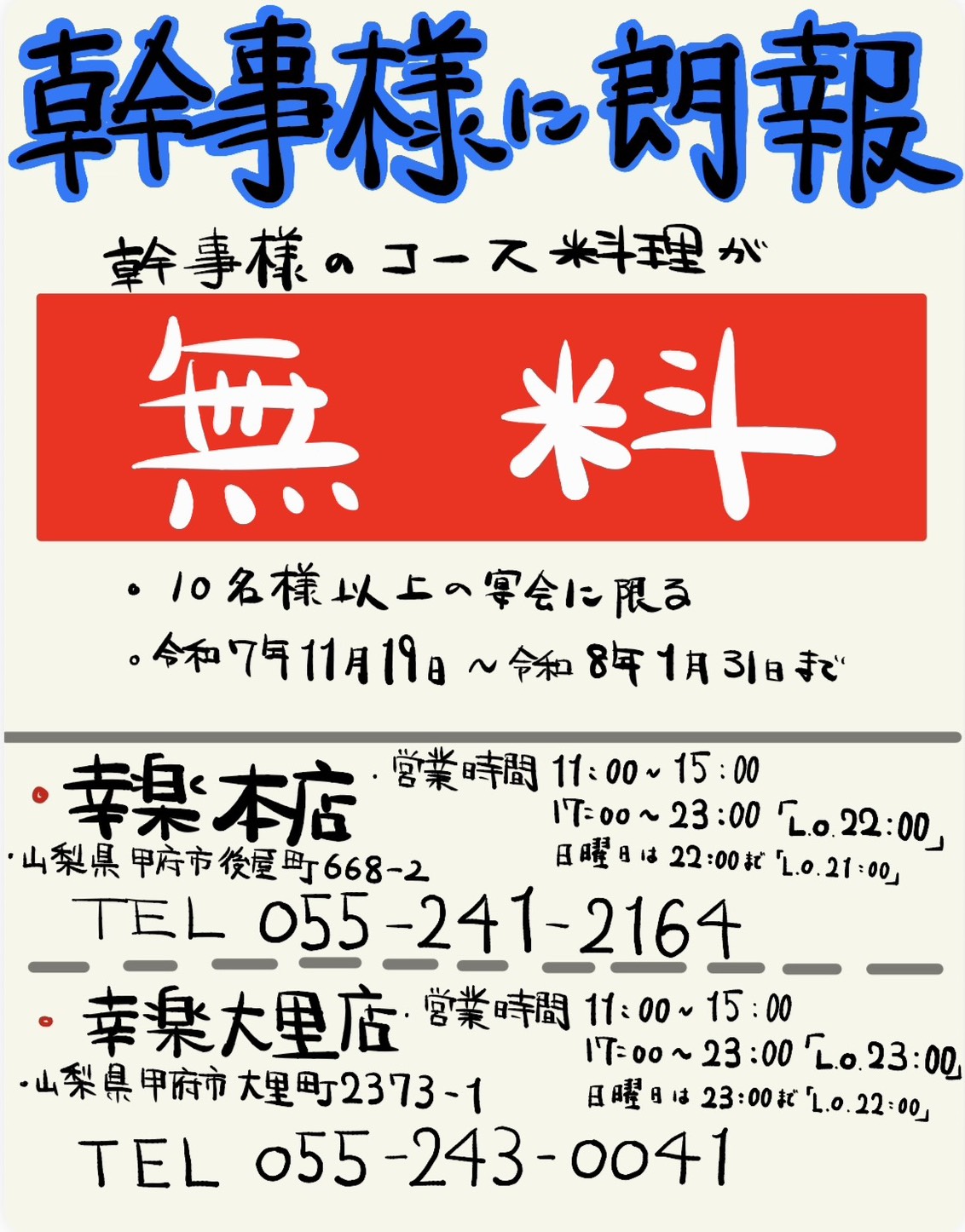 食事会、無尽、忘年会、新年会、さまざまの用途でお使い頂けます。